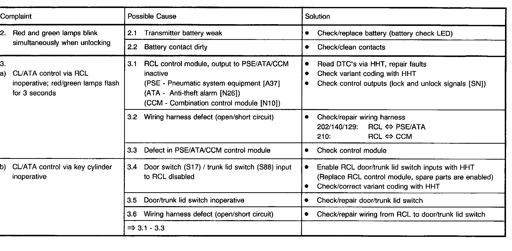If the numbers did not match, fuel injection is disabled (the engine will not start), and no message is sent to IRCL. When the IRCL sees circuit 50 (starter solenoid signal), it checks if a message was received authorizing the start, and if no message was received, the red and green lamps in the rearview mirror are flashed alternately. Of course, if the start is authorized, then the IRCL takes no action.