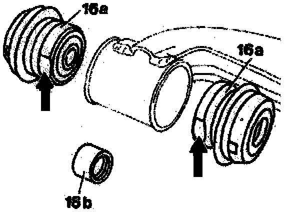 3. Insert rubber mount (16a) and spacer sleeve (16b) and pull in up to the stop