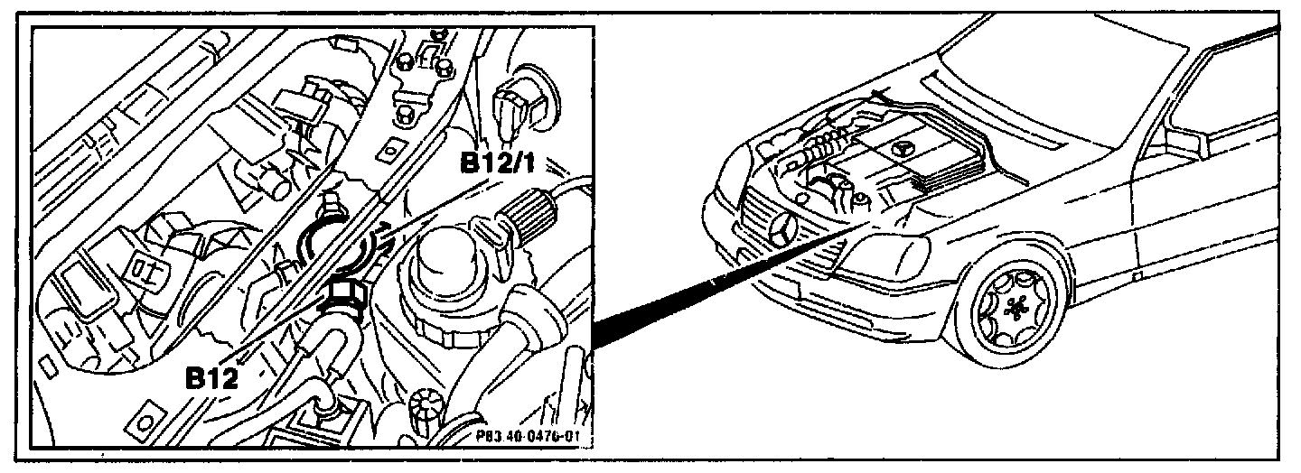 The refrigerant temperature sensor (B12/1) is located on the receiver in the engine compartment at the front left.