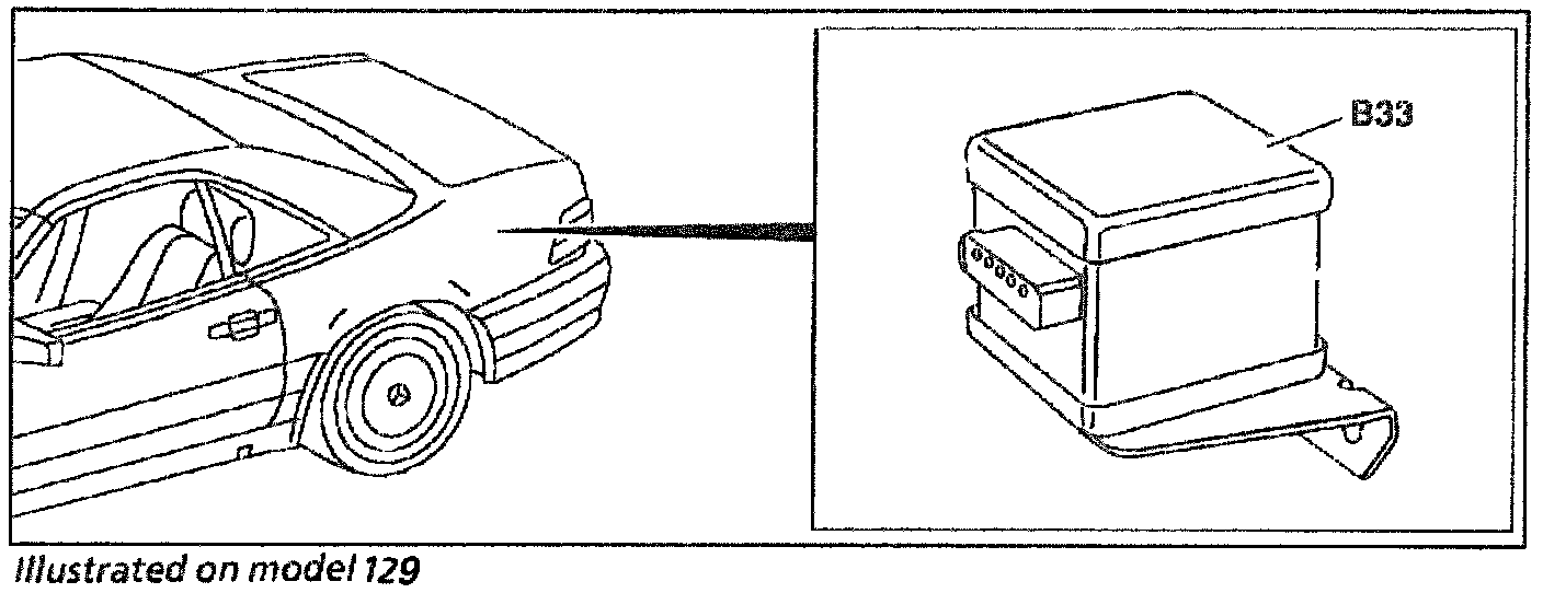 The ATA anti-towing sensor (B33) is installed in the trunk on the left side