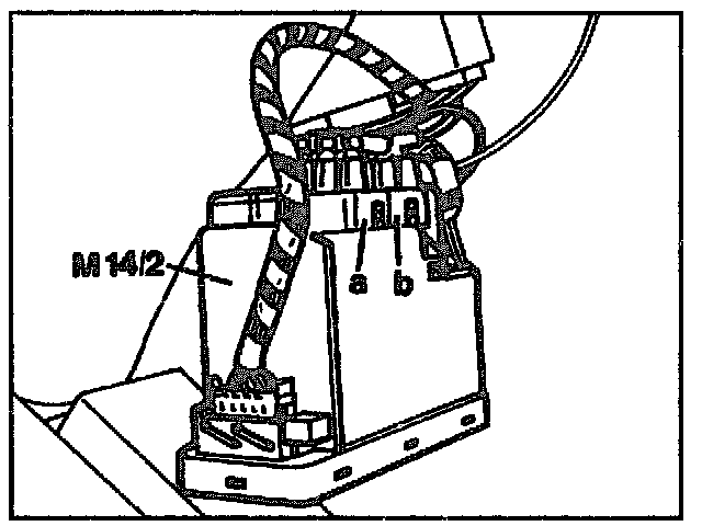 Disconnect distribution plug (a) or yellow/blue pneumatic line on supply