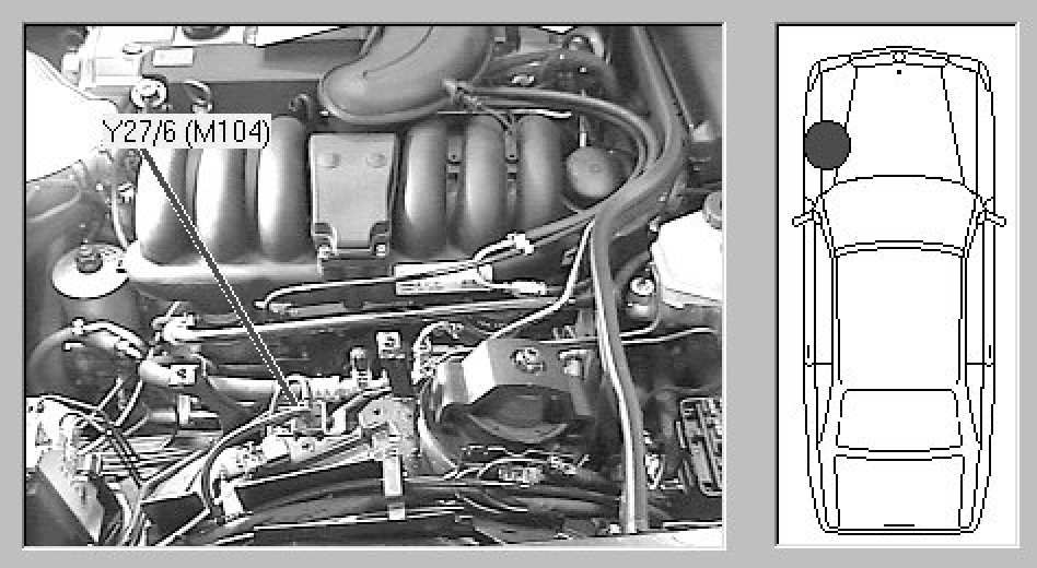 Engine compartment, in front of left shock tower