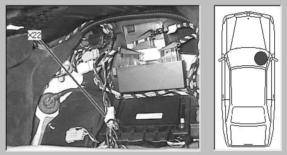 Passenger's footwell, blue connector beneath yellow connector (x33/10)