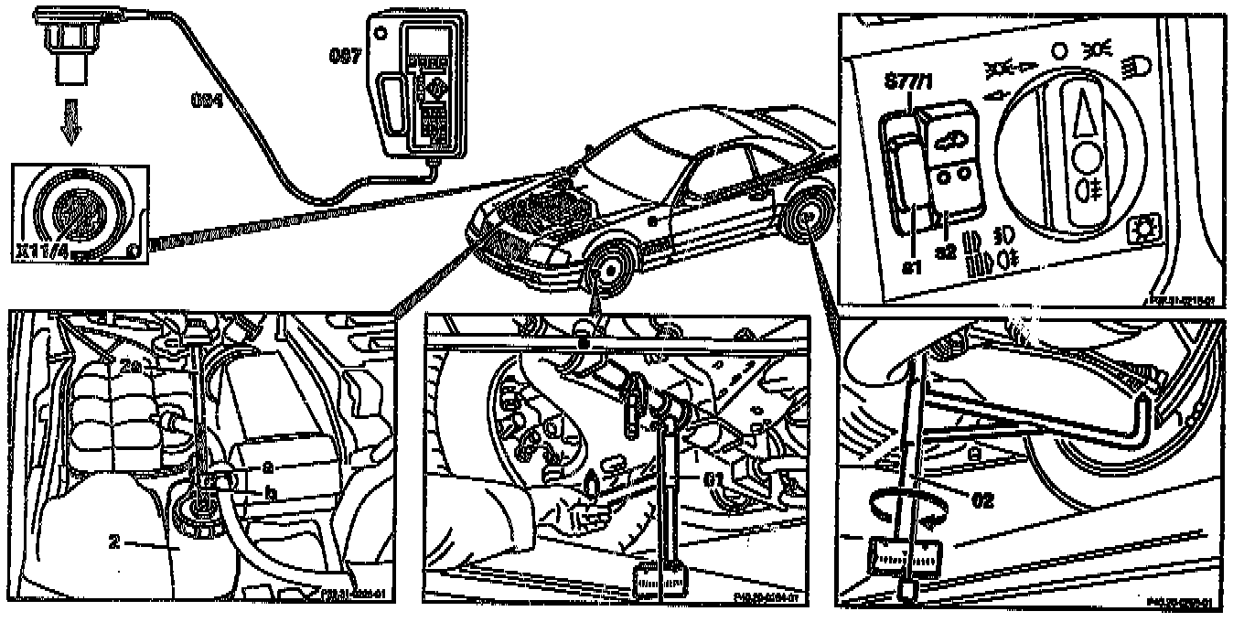 1. Connect Hand-Held Tester (HHT), (087) to Data Link Connector (DLC) (X11/4) for Diagnostic Trouble Code (DTC) readout, refer to Engine