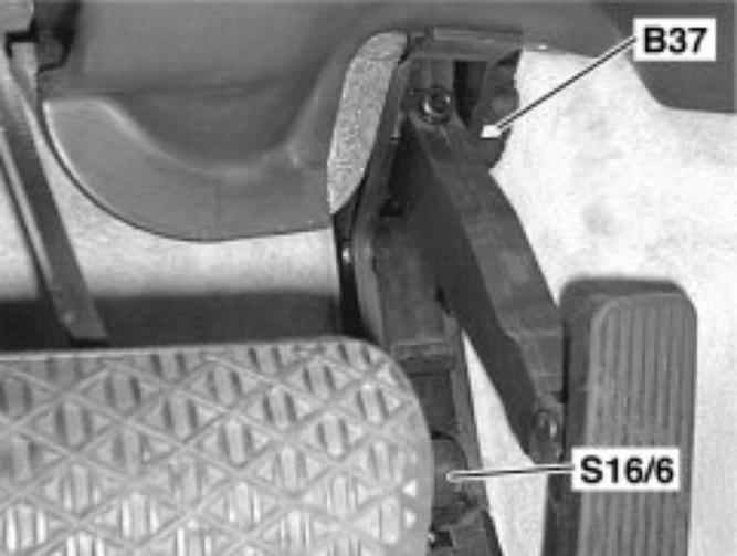 Detects the accelerator pedal position and passes on the information to the engine control unit