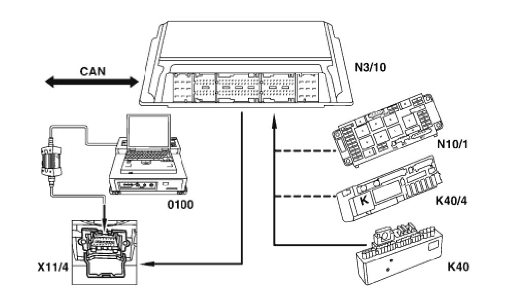 The ME-SFI control units on the left (N3/11) and right (N3/12) feature a fault memory. All the faults together can be read out only from the right ME-SFI control unit (N3/12).