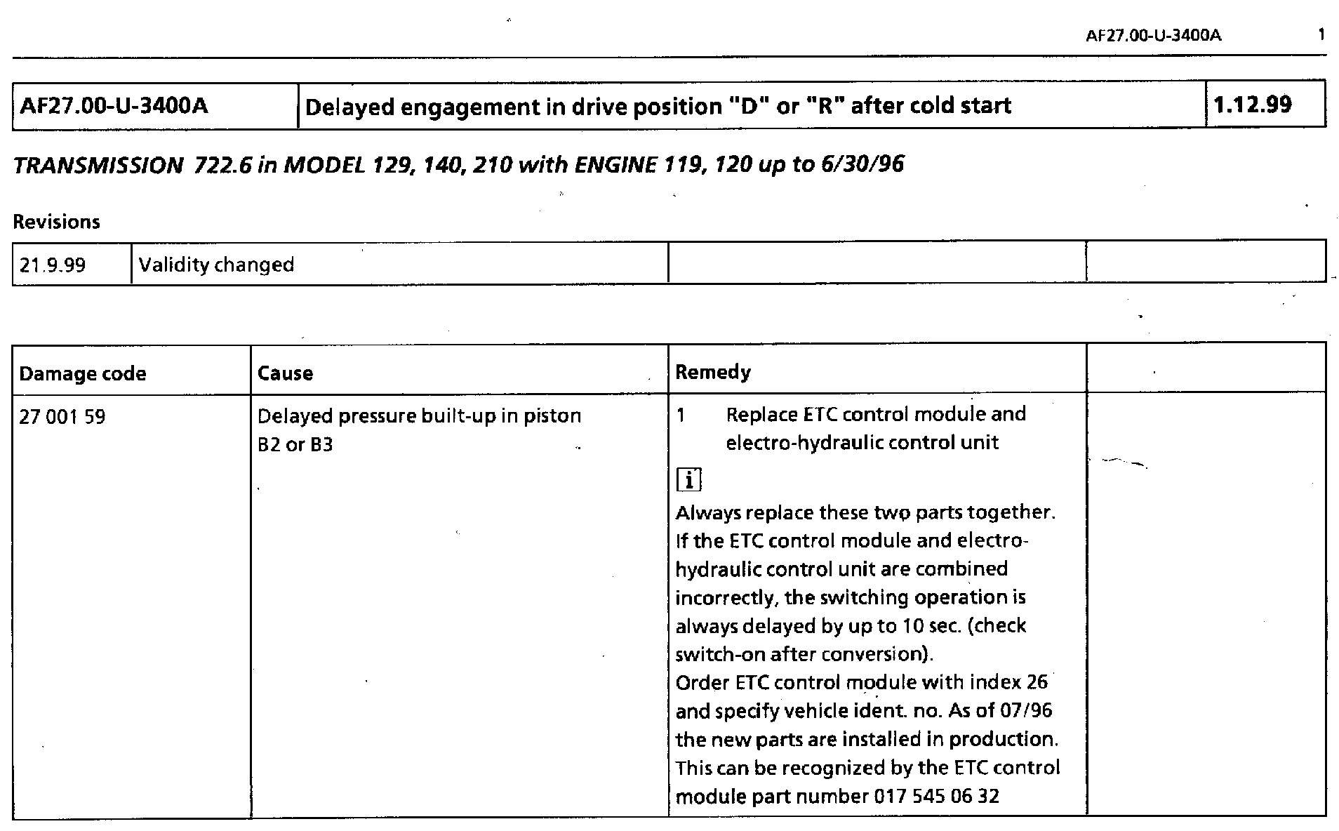 A/T - Delayed Engagement in Reverse and Drive When Cold