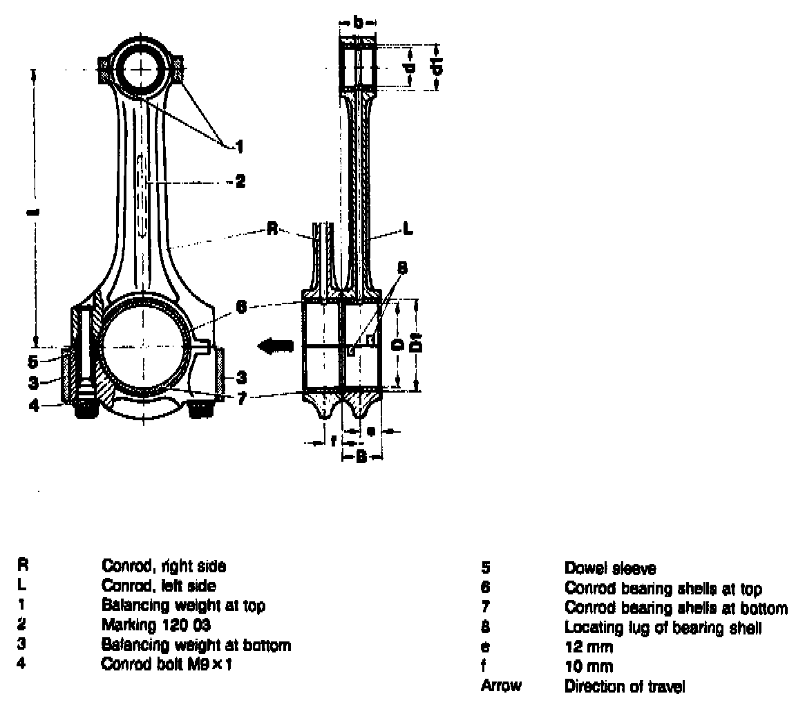 Conrod and conrod cover are marked together. The conrod shaft must not display any cross scores and notches.