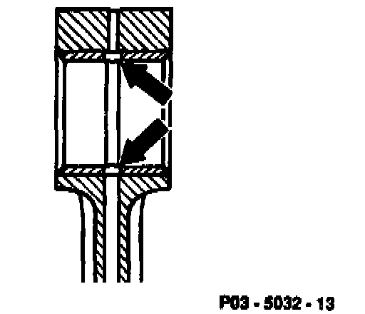 4 Press in now conrod bush so that the oil passages are aligned (arrows). Insertion pressure 2500 N.