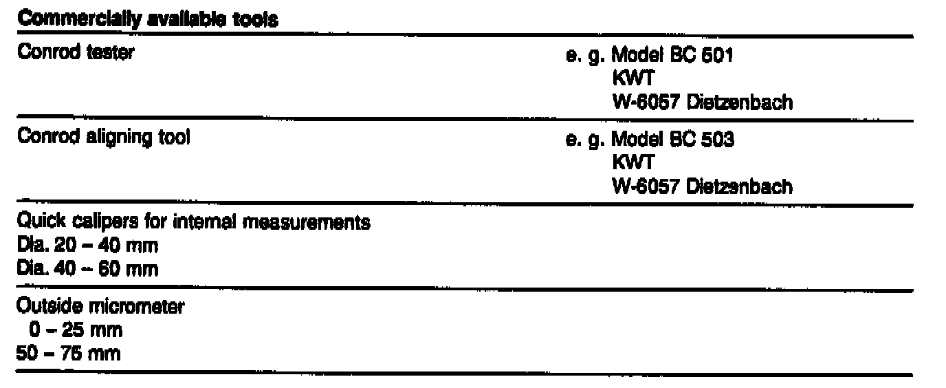 7 Check conrod with bearing shells and piston pins fitted with a conrod tester.