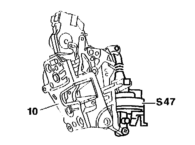 On vehicles with anti-theft warning system (EDW) a door actuator (S47) with an electrical switch is attached to the door lock of the left front door (10).