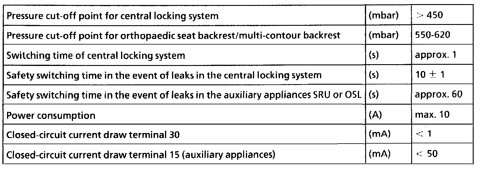 Technical data for pneumatic control unit (A37/2 - A37/5)