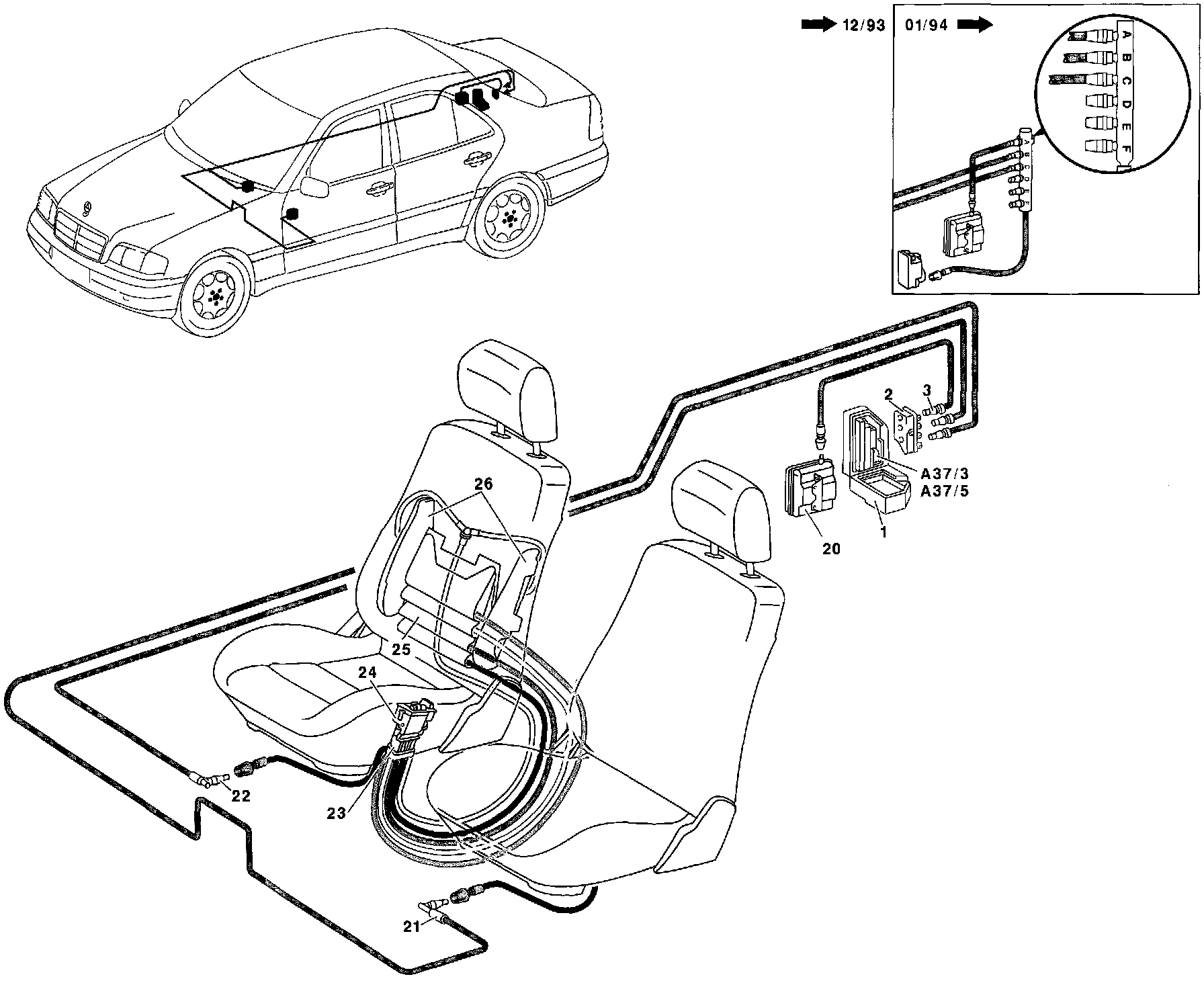 23 OSB pneumatic hose set (right front seat left front seat is mirror image)