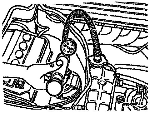 4. Pressurize cooling system to about 1.4 bar with the test cap and the tester.