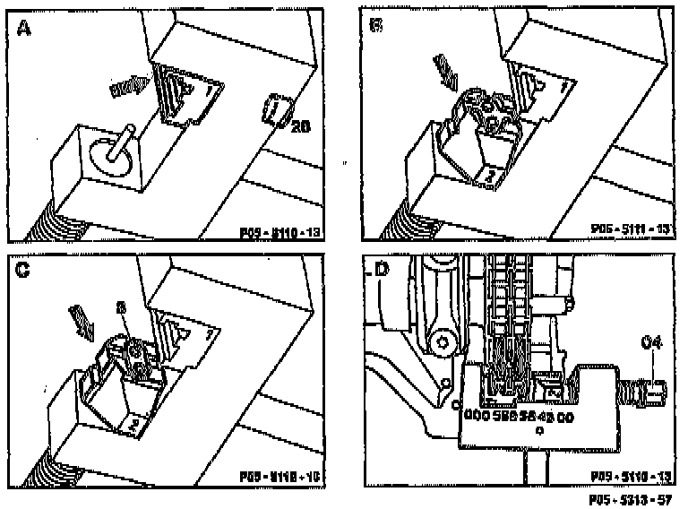 21. Turn over moving thrust piece with the insert 2 (riveting profile) (Fig. E).
