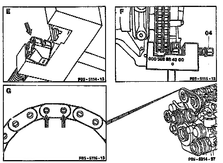 - Separate with chain separating tool 602 589 02 33 00 and thrust spindle 602 589 04 63 00, or equivalents.