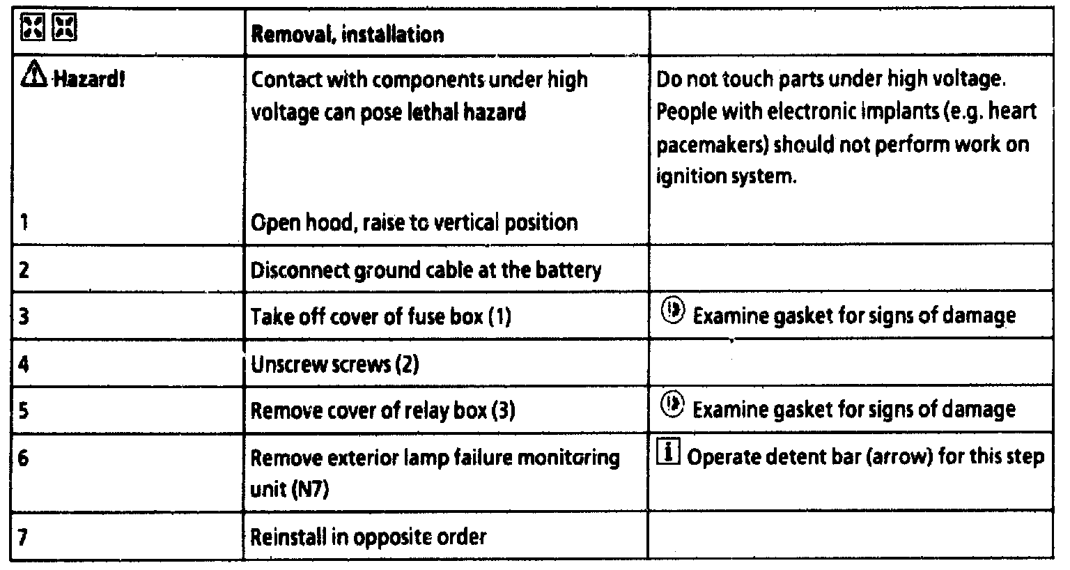 Removal/Installation, Steps 1 - 7: