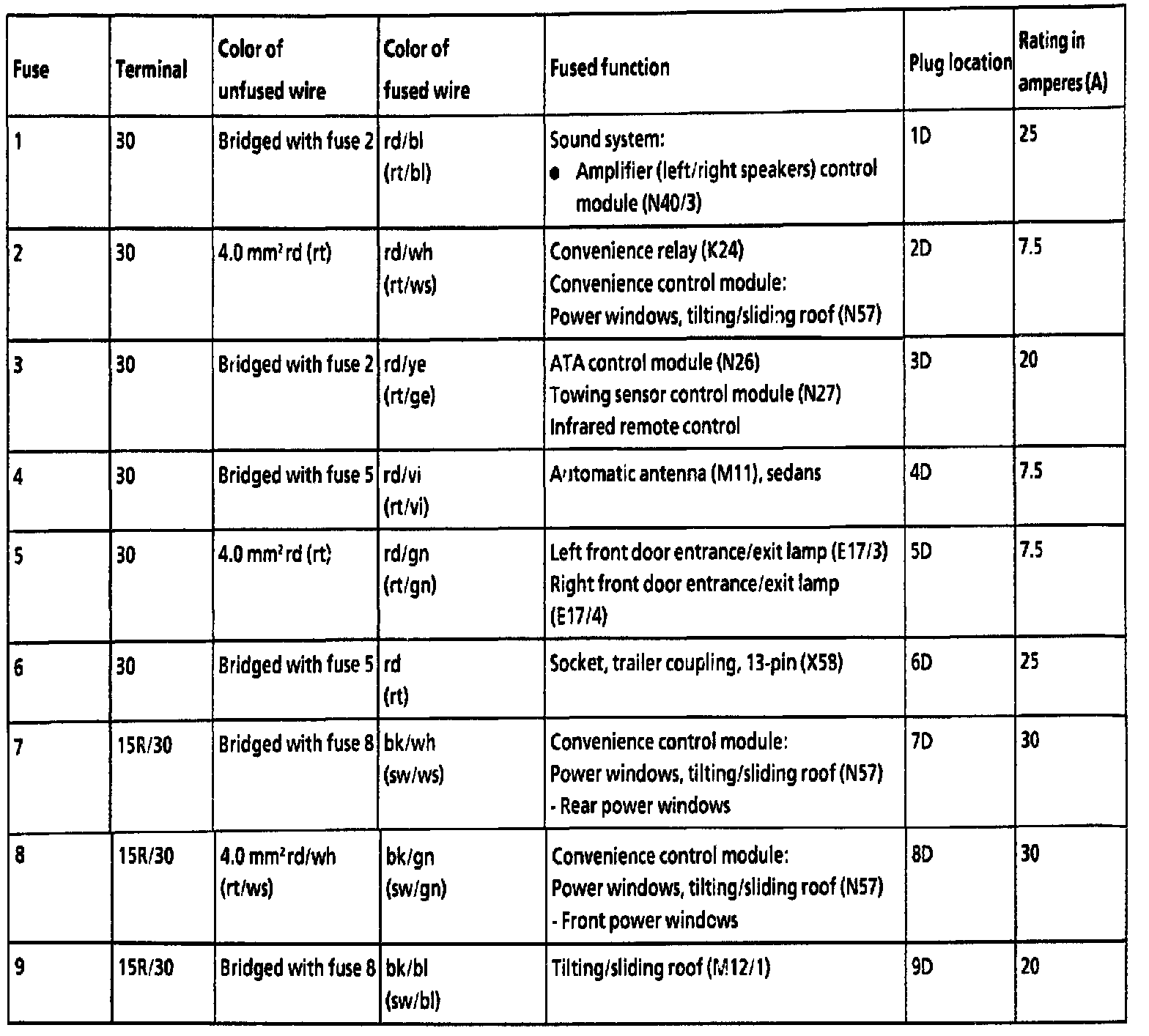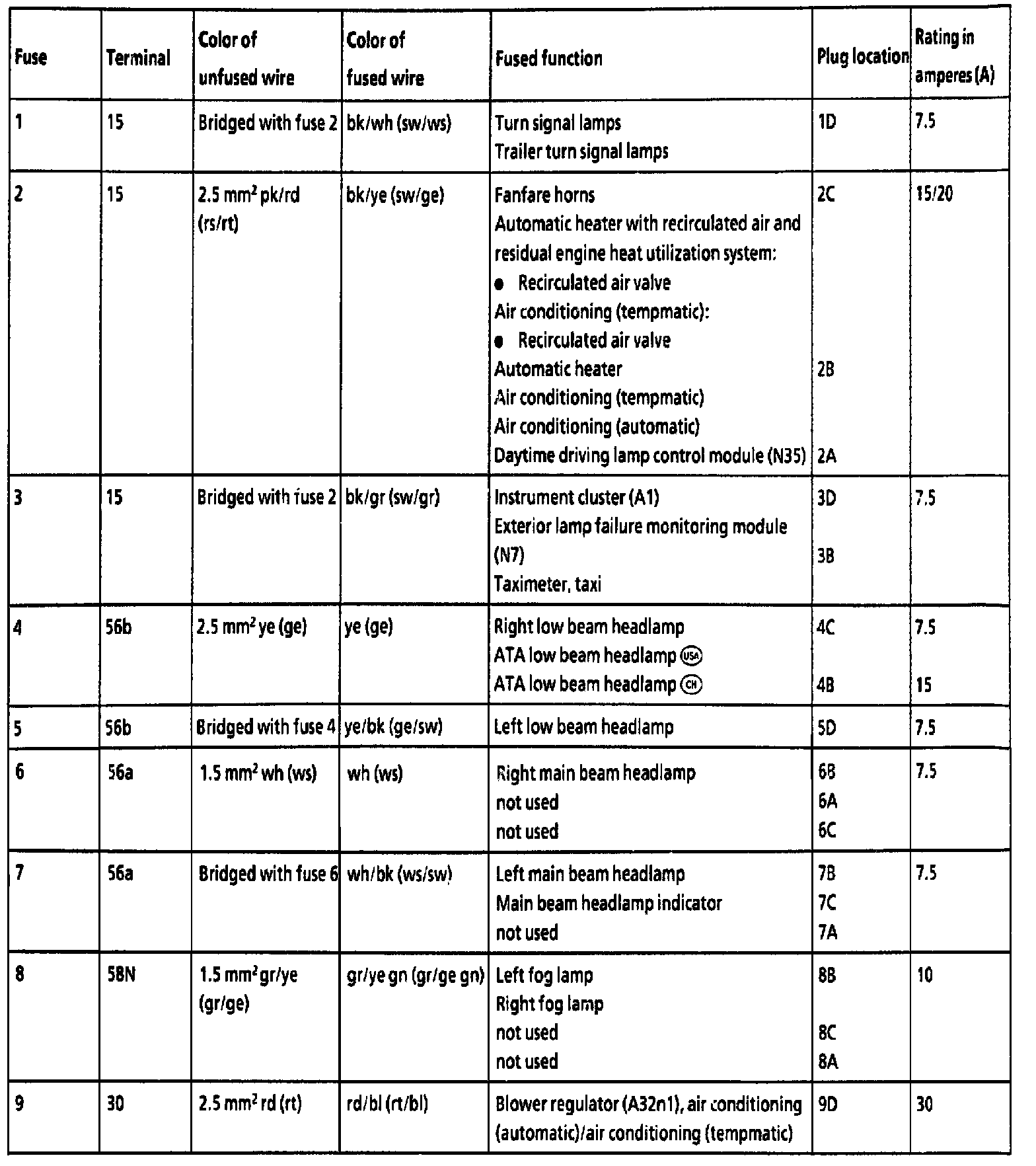 Fuses 1 - 9: