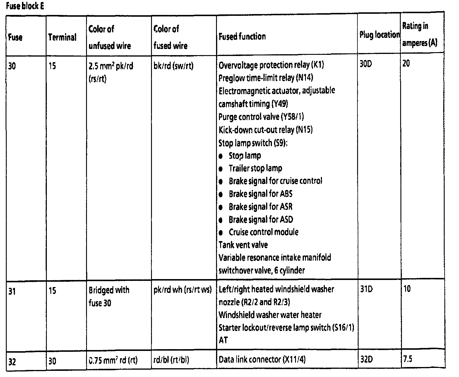 E - Fuse 31 - 33: