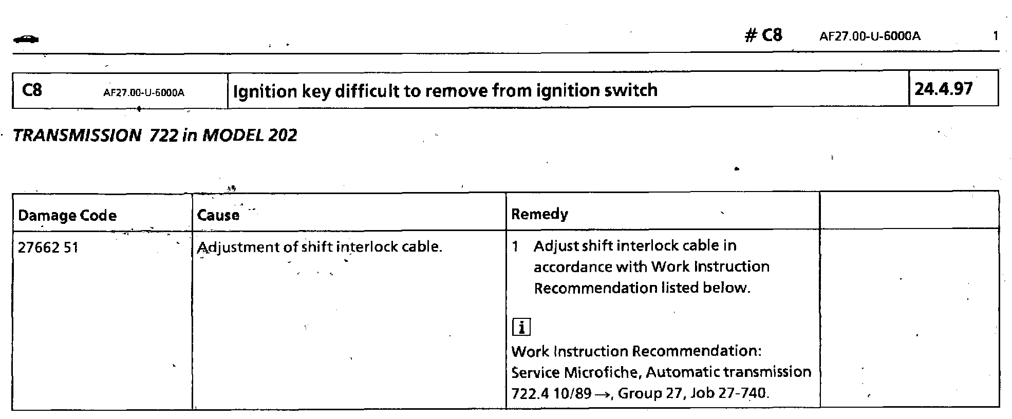 Ignition Key Difficult to Remove from Ignition Switch