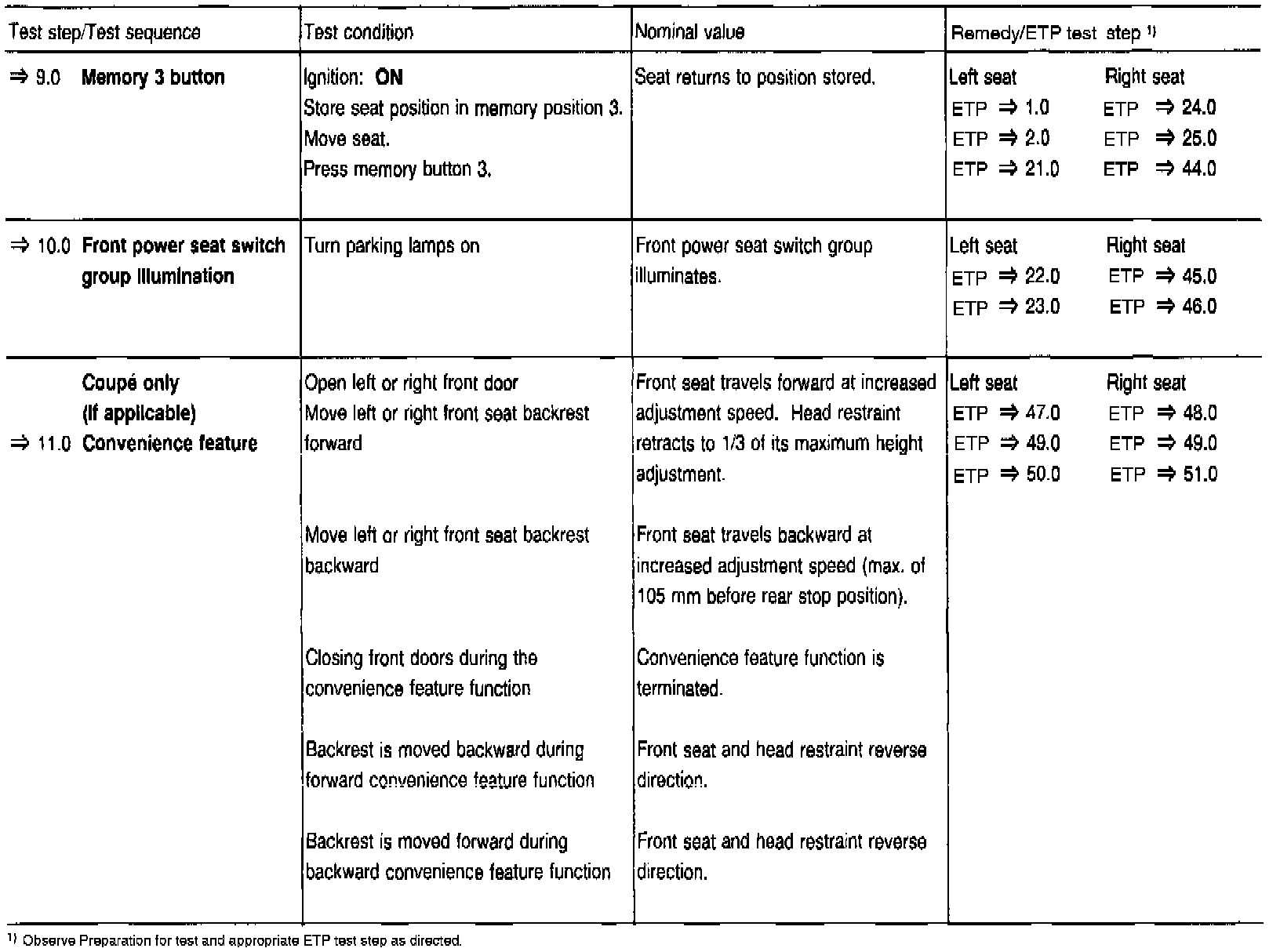 Function Test (Vehicles with Memory Seats)