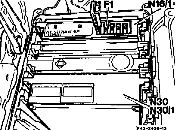 The ABS (N30) or ABS/ASR control module (N30/1) is located in the module box (F23).