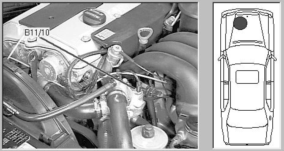 Engine compartment, left front top of engine.
