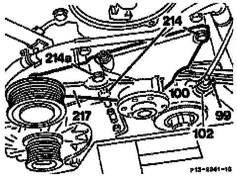 15. Unscrew bolts (214, 214a) and remove fan bearing bracket (217). Unscrew nut (99). Take off TDC sensor (100) together with cable and place to the side.