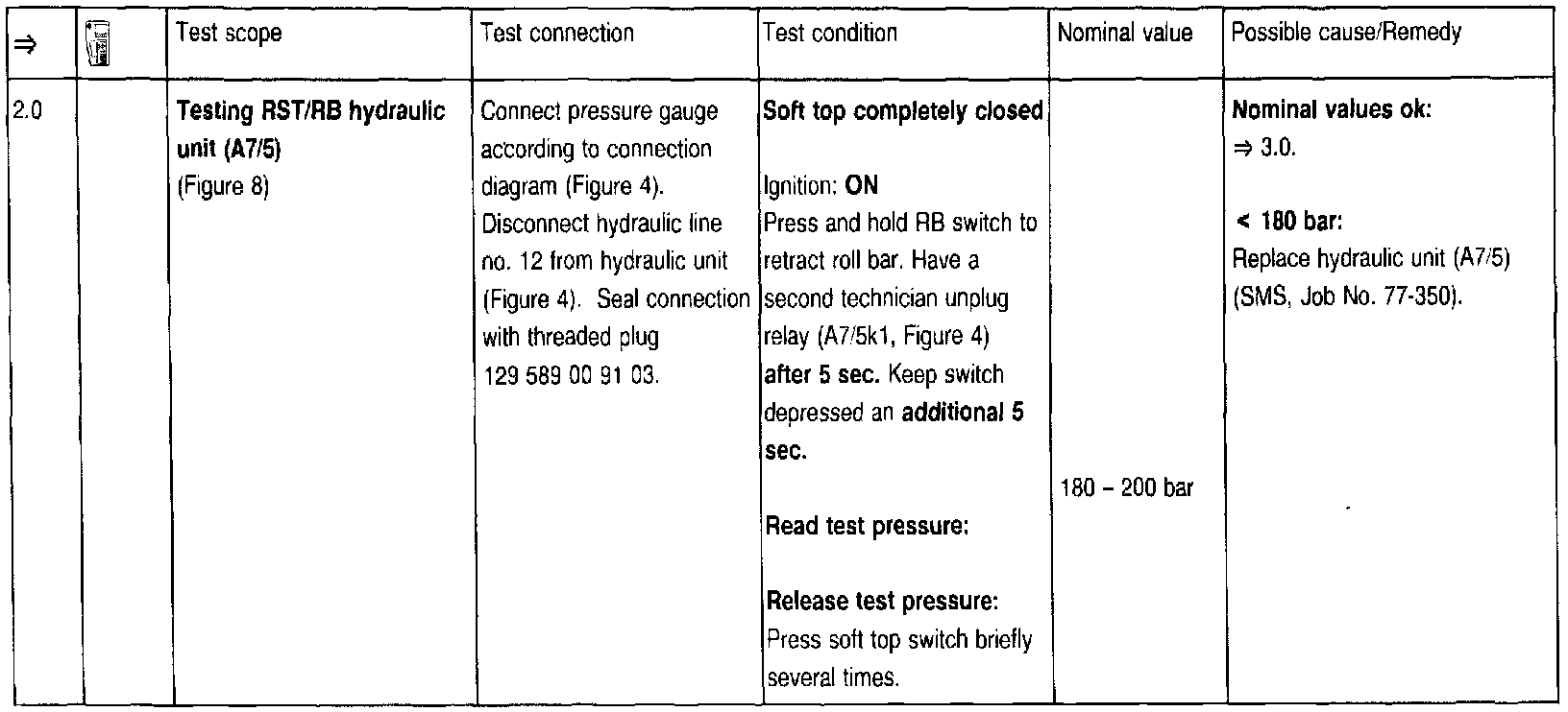 D. If hydraulic lines need to be disconnected from the valve blocks during pressure tests, the appropriate soft top position (end position of the hydraulic cylinder) must first be ensured.