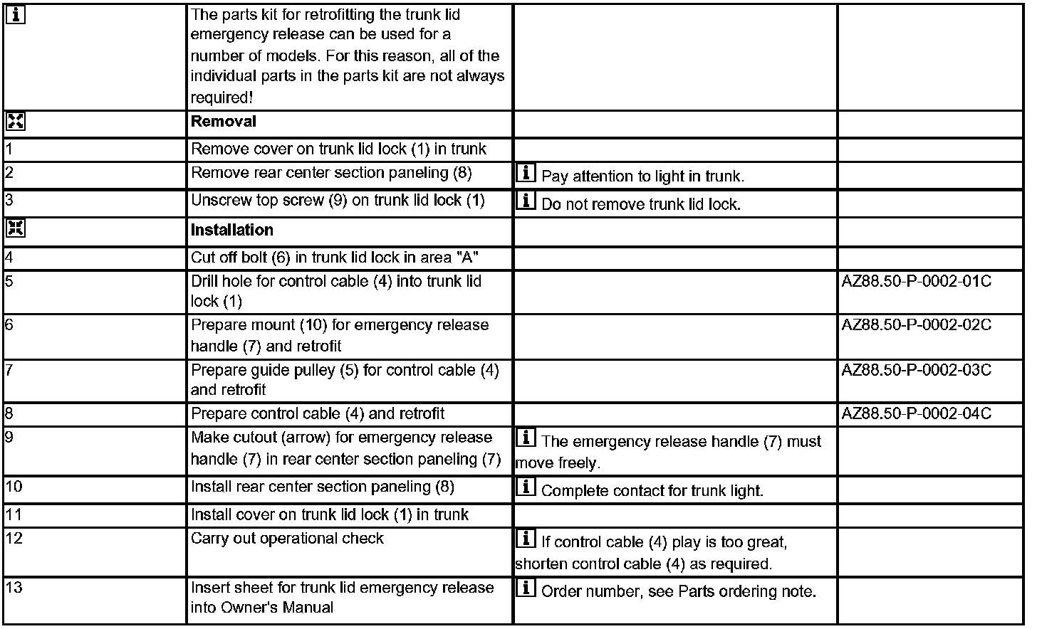 AZ88.50-P-0002C Retrofitting Trunk Lid Emergency Release