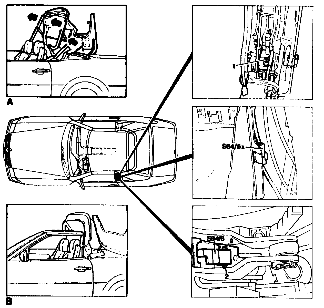 Connect multimeter to plug connector (S84/6x). Set multimeter to continuity test (acoustic signal).