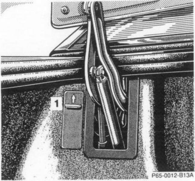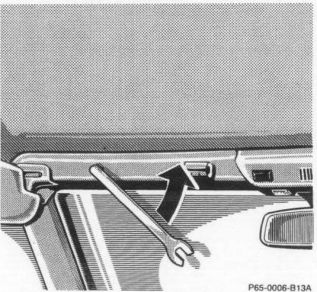 In case of malfunction, the hardtop can also be locked manually. A combination open-end/Allen-head wrench in the vehicle tool kit is required for thia job.