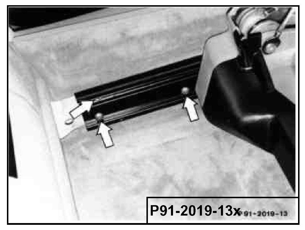 2. Both rear bolts on inner seat rail on tunnel floor.