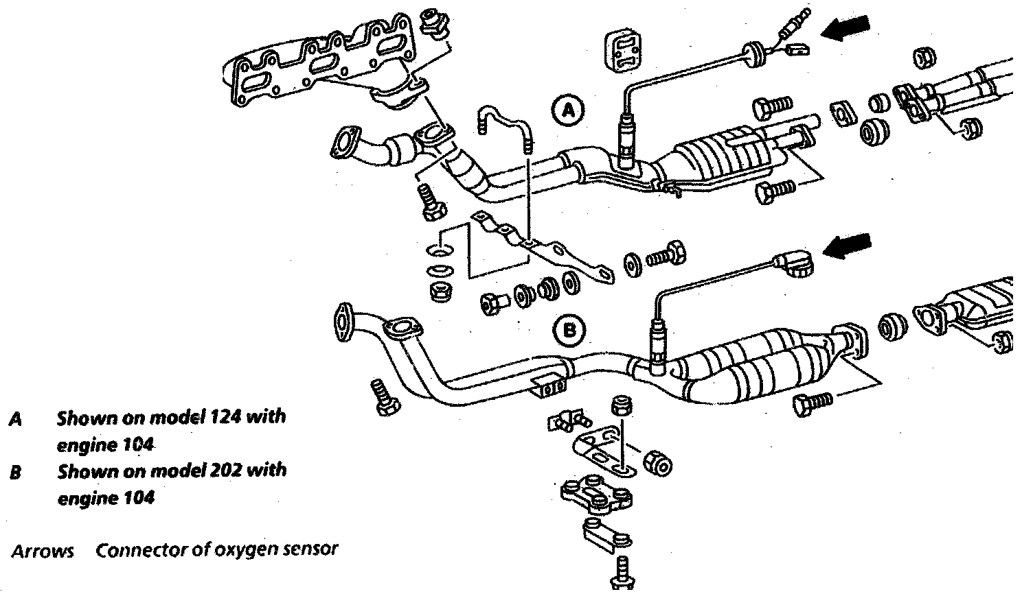 2. Disconnect connectors (arrows) for oxygen sensor.