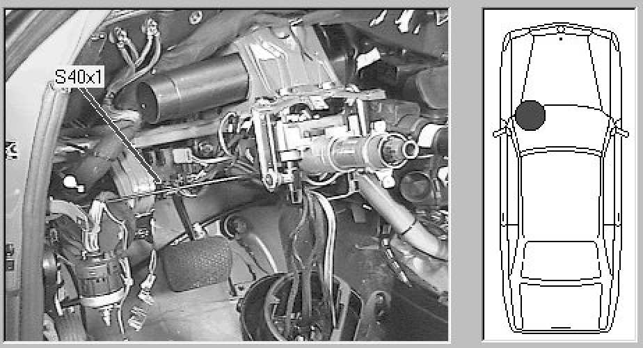 Interior, behind left dash board, left of steering column