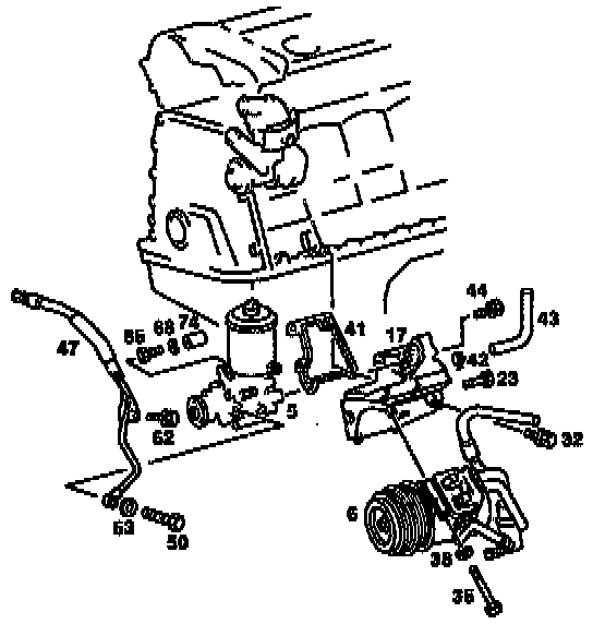 5. Remove A/C compressor with piping/wiring connected; unscrew bolts (35) for this step.