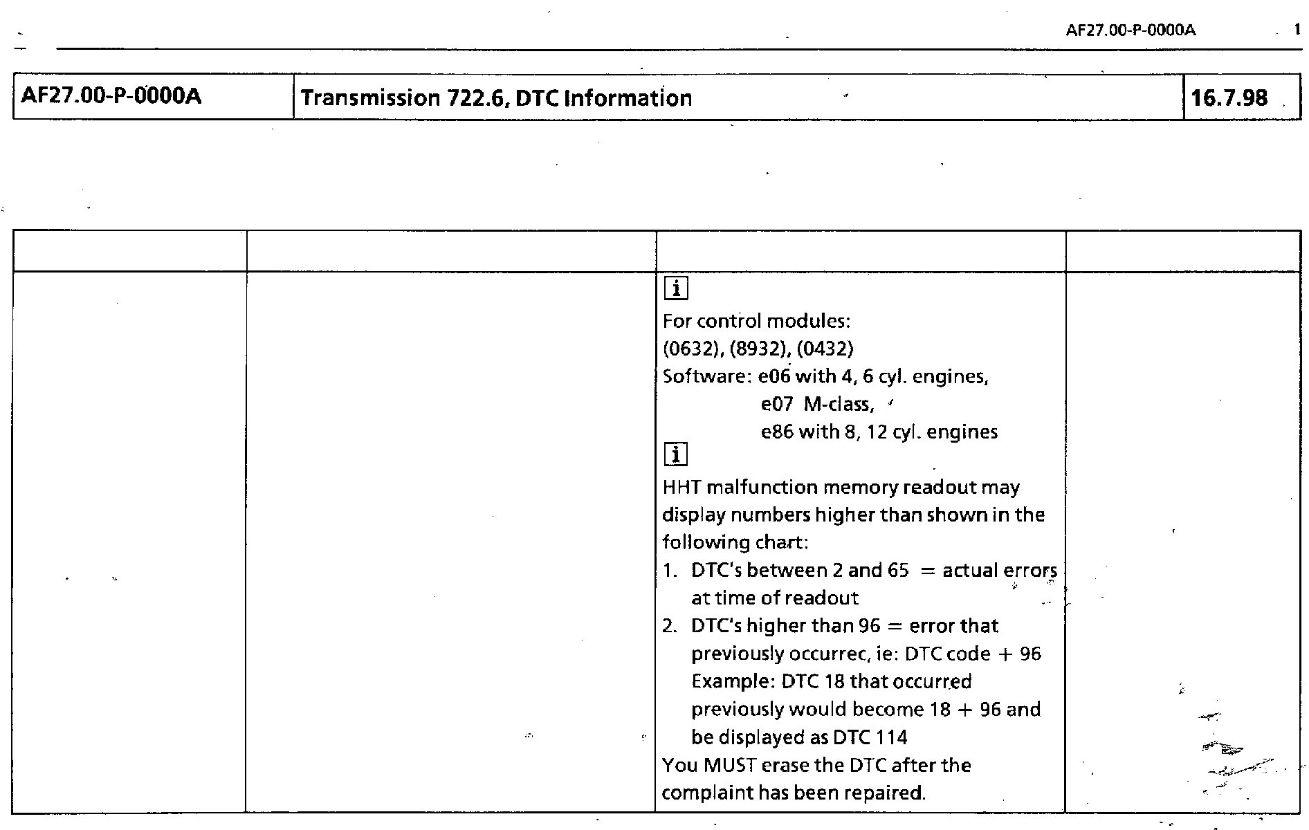 A/T 722.6 - DTC Information