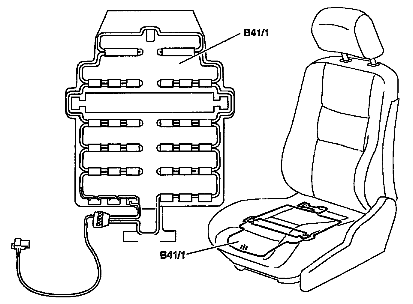 The front passenger seat occupied recognition sensor is located between the seat cover and upholstery.