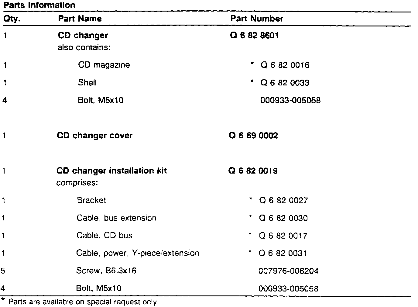Parts Information
