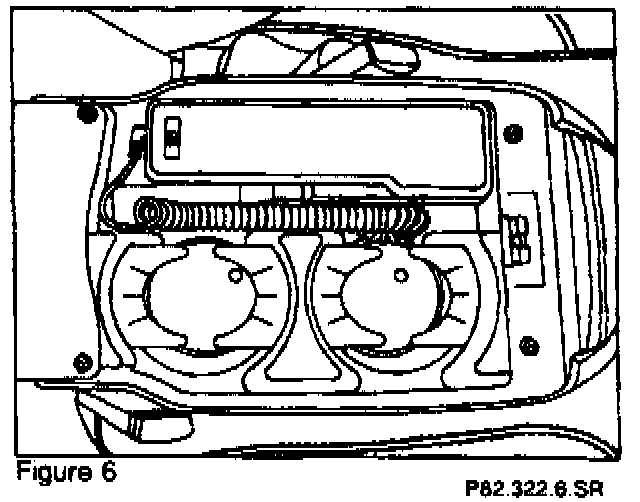 1. Remove three screws which secure cupholder to center armrest. Remove cupholder assembly. Carefully drill out four dimples on underside of cupholder assembly using 4.5 mm drill bit. Attach cradle to cupholder assembly using four screws.