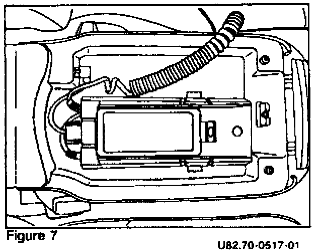 9. Push coaxial coupling into hole in front of armrest (Figure 6). DO NOT PINCH CABLE.