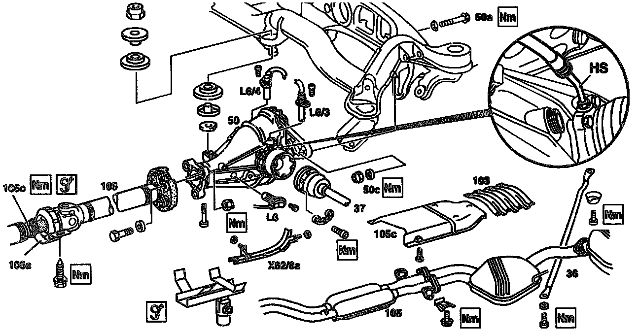 - Rear rear axle center assembly to rear axle carrier: 95 Nm