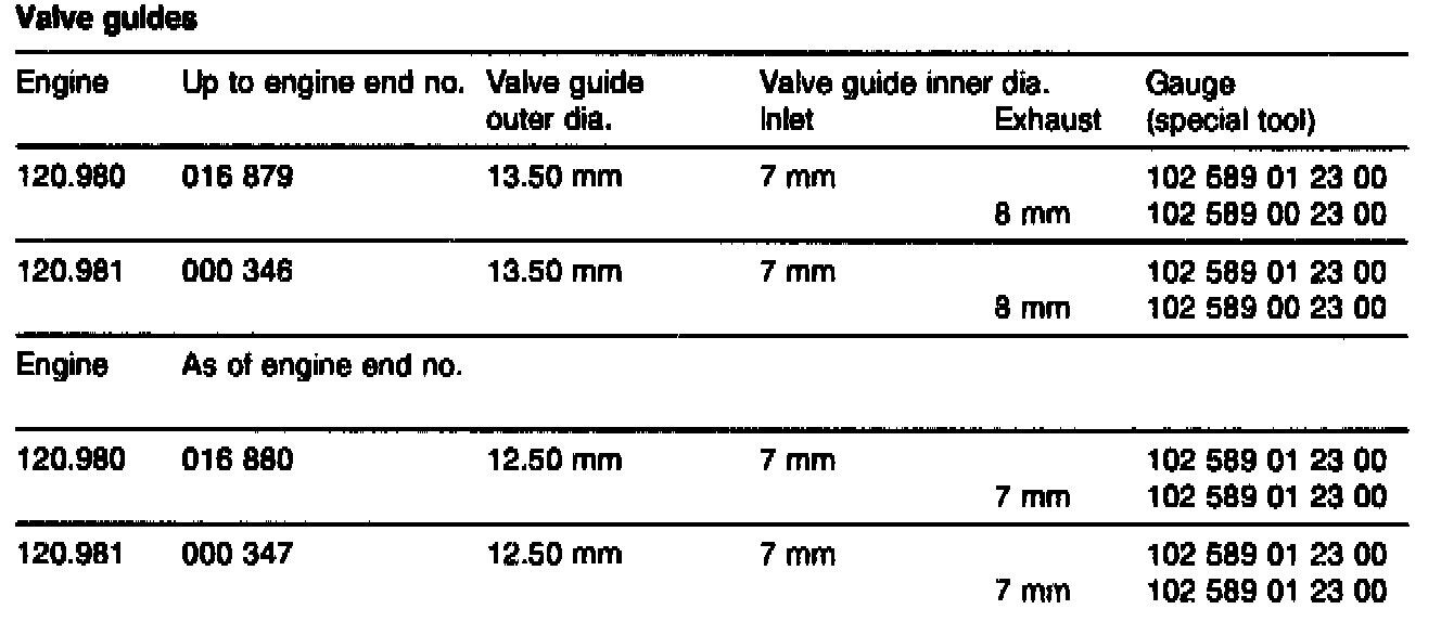 Check with gauge in lengthwise and transverse direction. Check whether the no-go stud with the wear limit size (+ 220) can be inserted into the valve guides over its entire height (5 mm).
