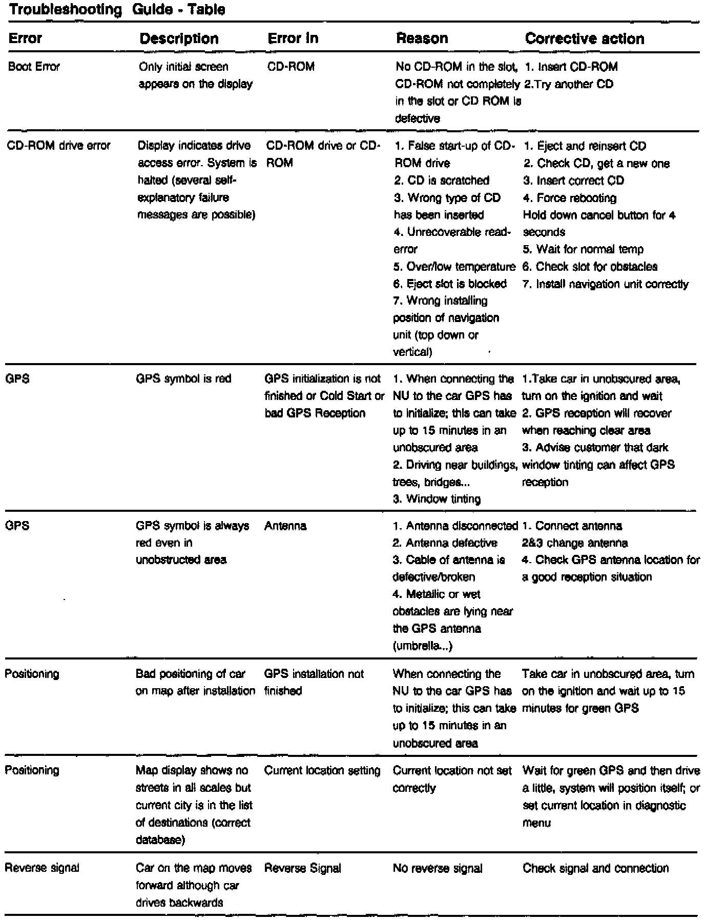 Troubleshooting Guide - Table - Model 140