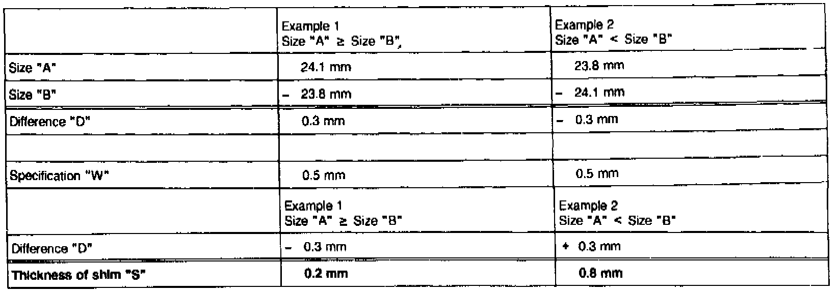 CAUTION: If the result for "D" is a negative value, the amount of "D" must be added to the specified value (0.5 mm) (S = W - (-D) = W + D). Otherwise, the camshaft position sensor would be damaged because of its protection. Shims (10) are available as replacement parts in 1/10 graduations from 0.1 - 1.0 mm.