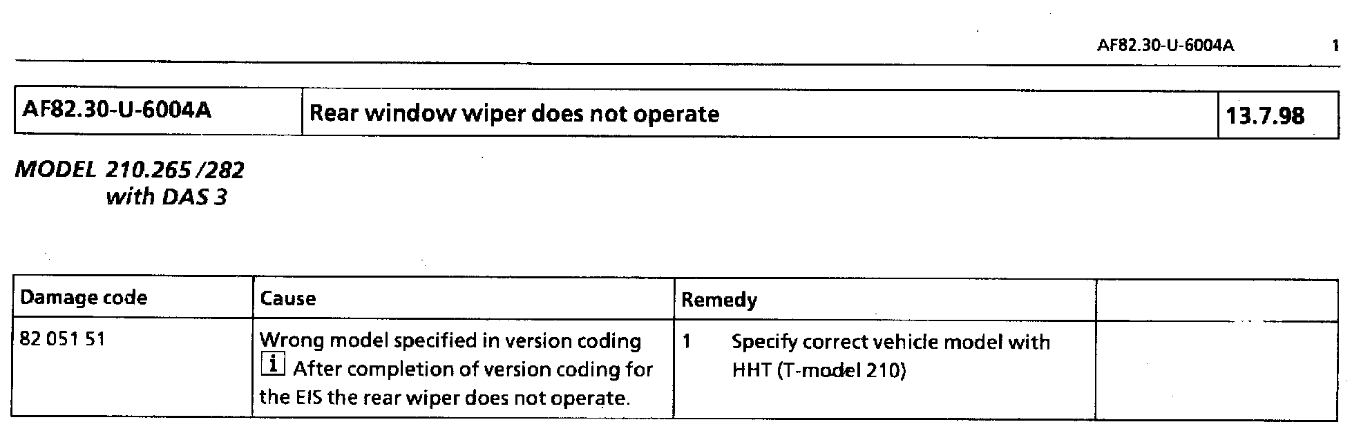 Rear Window Wiper Does Not Operate