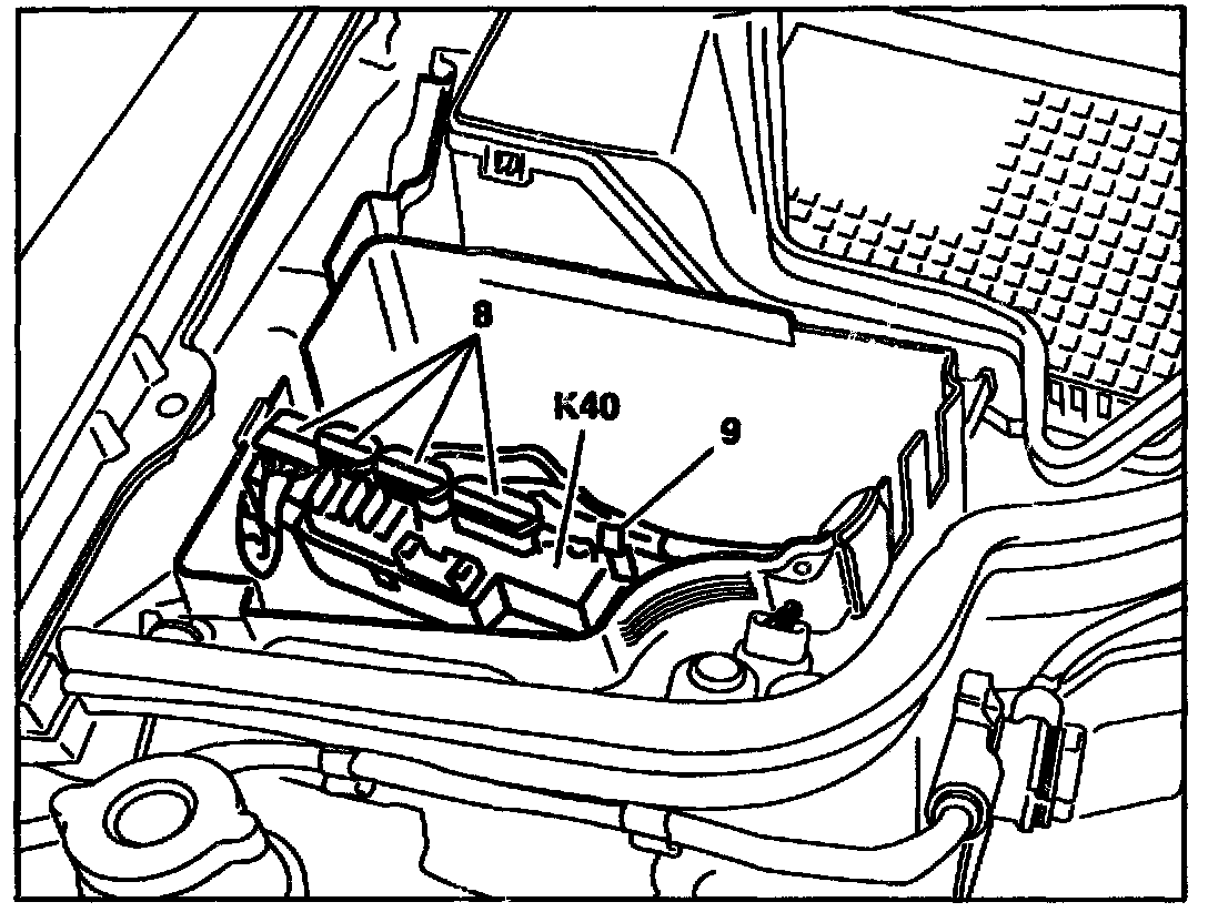 2 Press clamping spring (9) to side and remove relay module from control module box.
