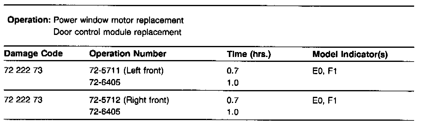 POWER WINDOW ELECTRIC DRIVE REPLACEMENT PROCEDURE