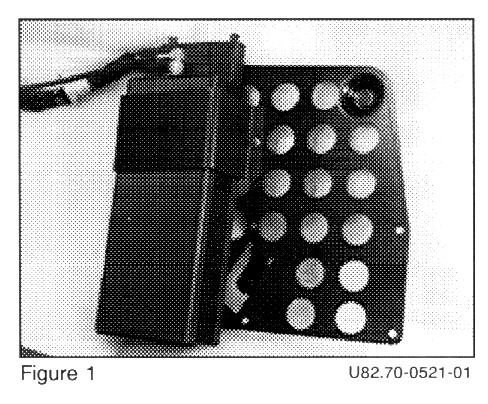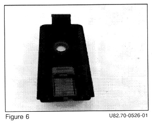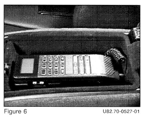 2. Place template into the box, then punch and drill two (2) cradle mounting holes FOR EITHER MOBILE OR PORTABLE CRADLES AS APPROPRIATE. Punch and drill 1.5" coil cord access hole at the rear of the box. Install grommet (Figure 6).