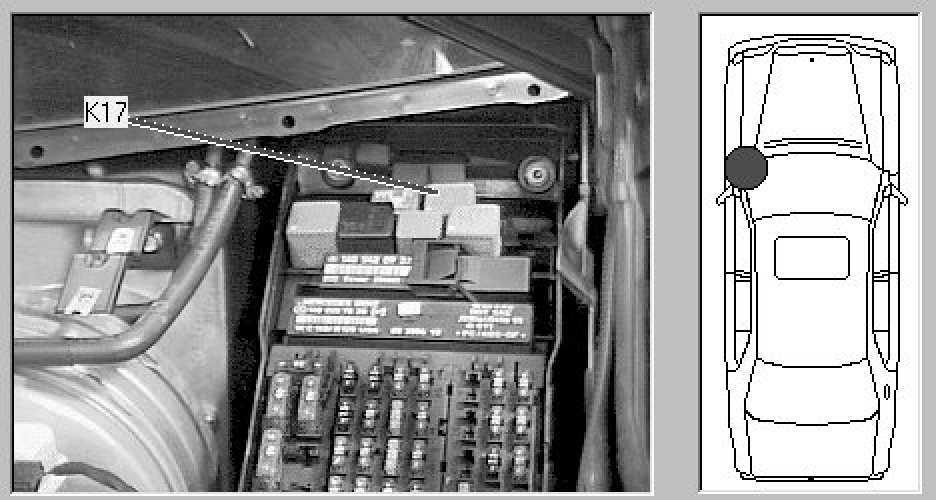 Left rear of Engine compartment, left component compartment, in rear of Fuse box F3.